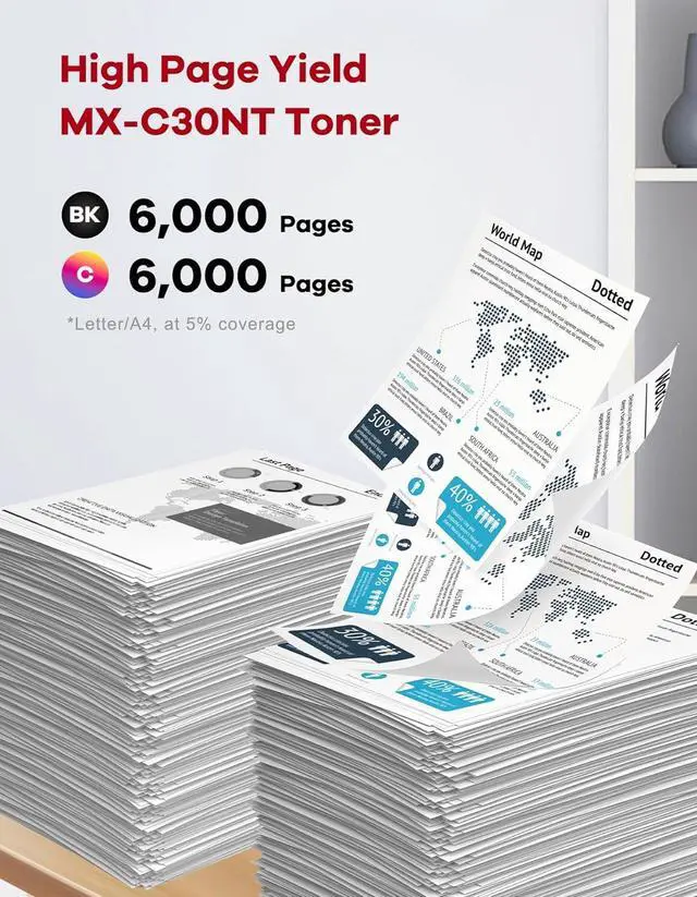 Easy Installation and Use: Our MX-C30NT toner cartridges are designed for easy installation and use, so you can spend less time troubleshooting and more time printing. Simply pop them in, and you're ready to go