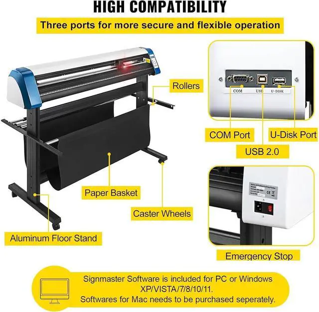 Powerful Design for Multiple Uses: Our intricately designed cutting plotter is structured with a basket and a heavy duty sheet metal floor stand featuring 4 caster wheels for convenient movement. Besides, inside fuses can decrease your probability of hurting.It is suitable for stickers, crepe paper, and many other materials and can be used for car stickers, traffic signs, balloons, helmets, etc.
