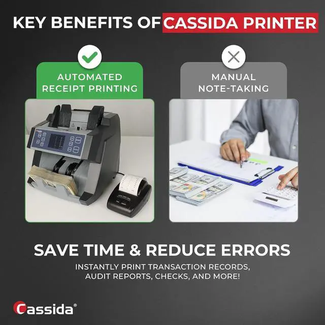 Prints detailed, time-stamped reports from a wide variety of currency handling equipment.