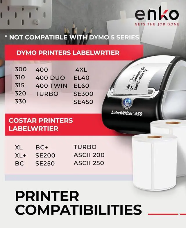 enKo labels are not compatible with DYMO 550 & 5XL printers that require RFID chips for operation. These printers have specific technological requirements that our labels do not meet.