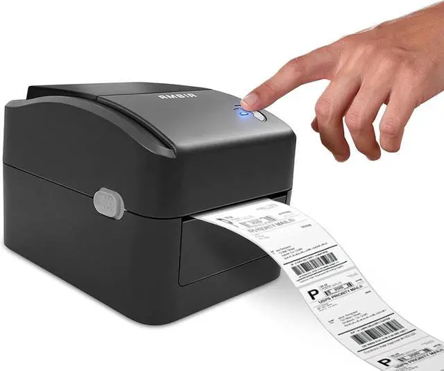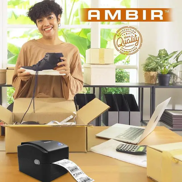 Simple to operate, the Ambir LP400 thermal shipping label printer is compatible with Windows 10, 11, and Mac OS