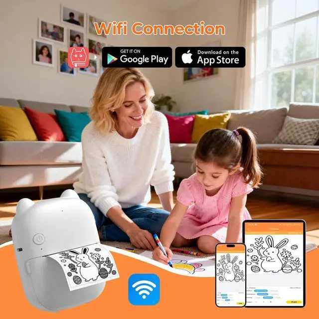 Kid-Friendly Images & Safe MaterialsAI-generated artwork uses child-oriented styles and safety filters. Stickers are printed on thermal paper designed for little handslightweight, smooth, and easy to handle. A safe and worry-free sticker maker mini printer for creative play.