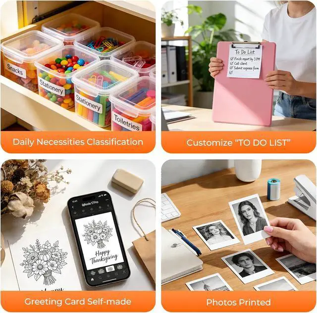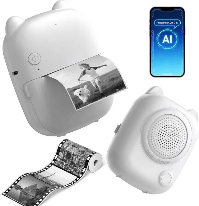 Portable Inkless Mini Printer with Adhesive Paper IncludedInk-free thermal printing at 200 DPI with no ink or toner required. Ultra-lightweight (165g) and Bluetooth-enabled for iOS & Android. Includes 1 roll of adhesive sticker paper, making this mini printer sticker maker gift-ready for birthdays, holidays, and special occasions.