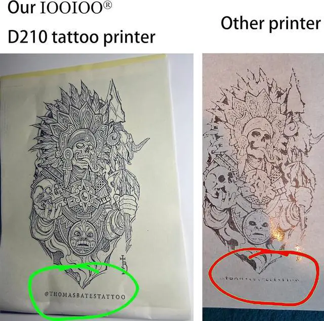 Good Print Quality: This printer is capable of printing on A4-sized thermal paper or transferring tattoo stencils. When printed using this tattoo machine, even large black blocks and sharp lines are visible. Please note that it is not ideal for gradient designs or colors