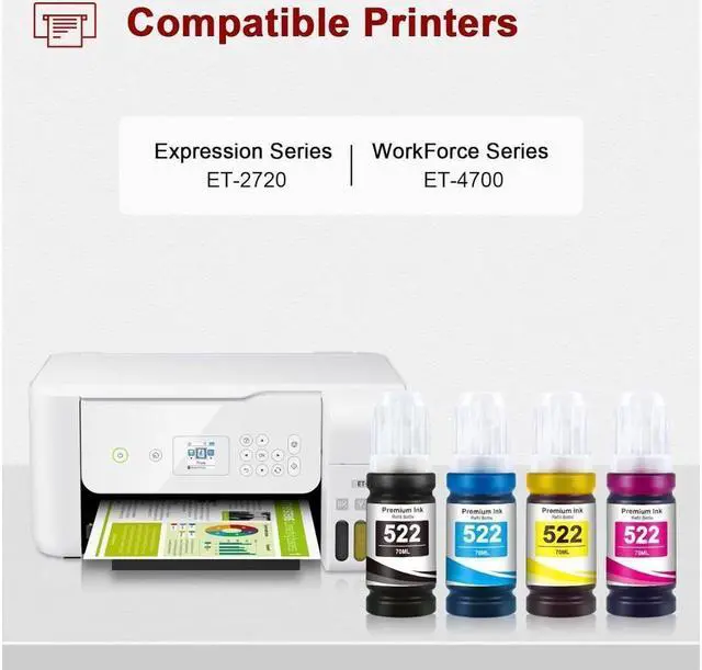 • Compatible PrinterToner Kingdom 522 ink work with ET-2720, ET-4700, ET 2720, ET 4700 printer, help print office memos, reports, flyers, contracts, presentations