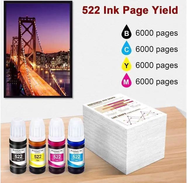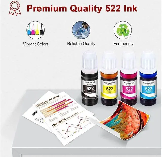 • Reliable Performance522 ink bottle refill print smooth color and textures, clear and natural, perfect for office and home,meet your needs anytime, anywhere