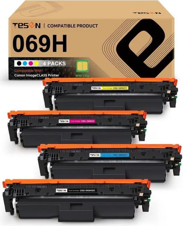 Package includes: 4 Packs CRG-069H 069H Toner Cartrigde (1 x Black, 1 x Cyan, 1 x Magenta, 1 x Yellow), 1 x Instructions.