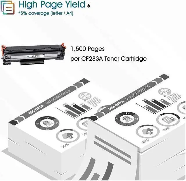 Page Yield: 1, 500 Pages per Black 83A CF283A Toner Cartridge Based on 5% coverage (Letter/A4)