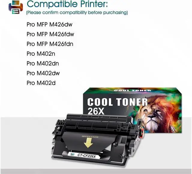 What You Get: Cool Toner 2 Pack Compatible for 26X CF226X High Yield Toner Cartridges also Available in Standard Yield 26A CF226A Toner Cartridges