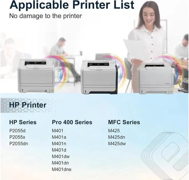 Reliable Compatibility: Pro 400 M401 M401a M401n M401d M401dn M401dne M401dw MFP M425 M425dn M425dw, P2055d P2055dn P2055x.