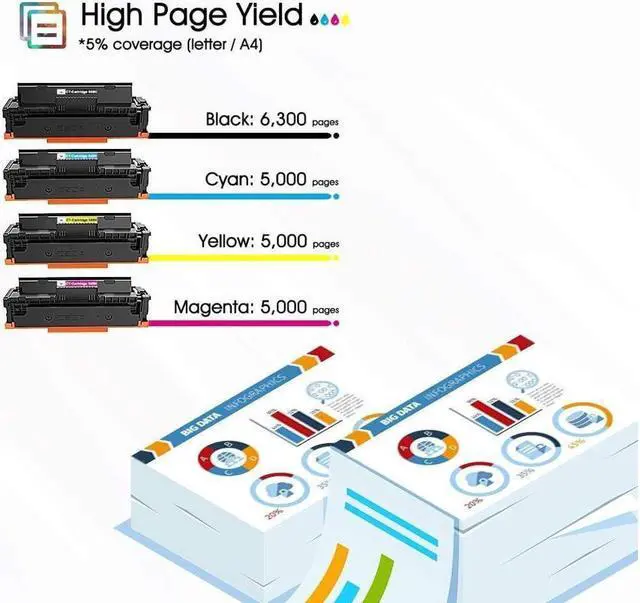 High Yield: 6, 300 Pages (046H Black Toner) and 5, 000 Pages (046H Color Toner) Based on 5% coverage (Letter/A4)