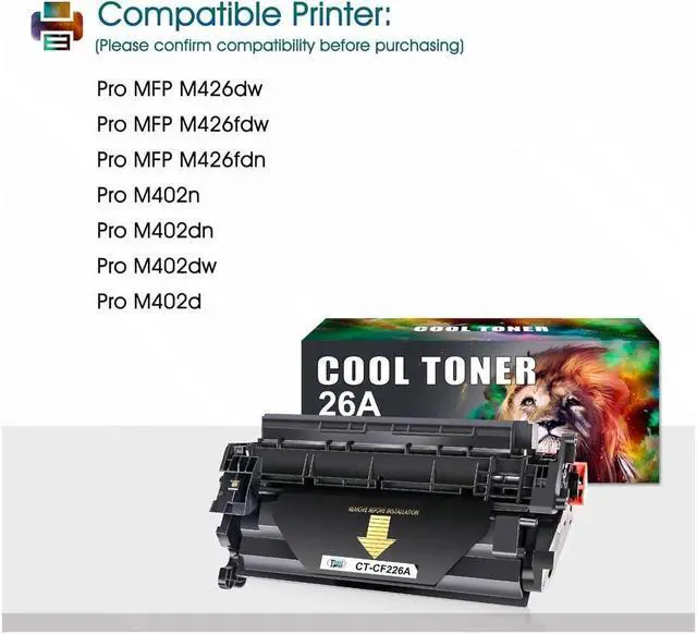Replacement for OEM: Cool Toner Compatible for 26A CF226A Standard Yield Toner Cartridges also Available for 26X CF226X Toner Cartridges High Yield