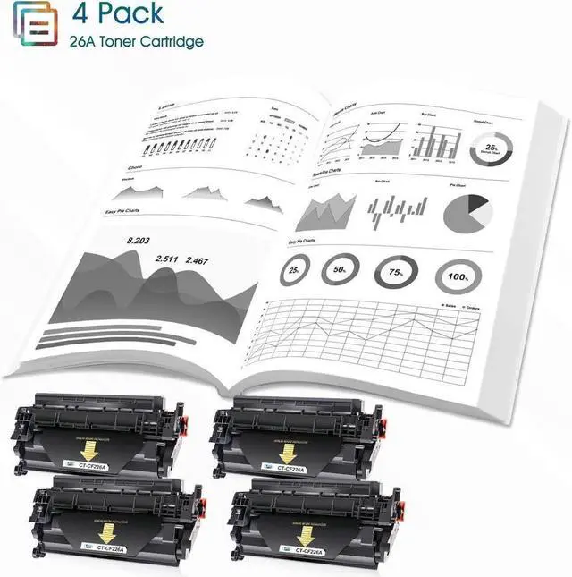 lnclude: 4 Pack 26A (CF226A) Black Toner Cartridges