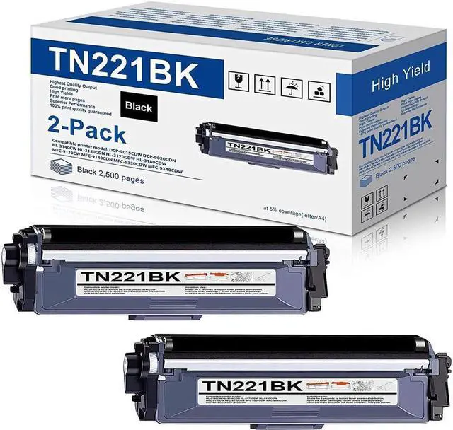2 Pk TN221 Black Toner For Brother TN-221 HL-3180CDW MFC-9330CDW MFC-9340CDW