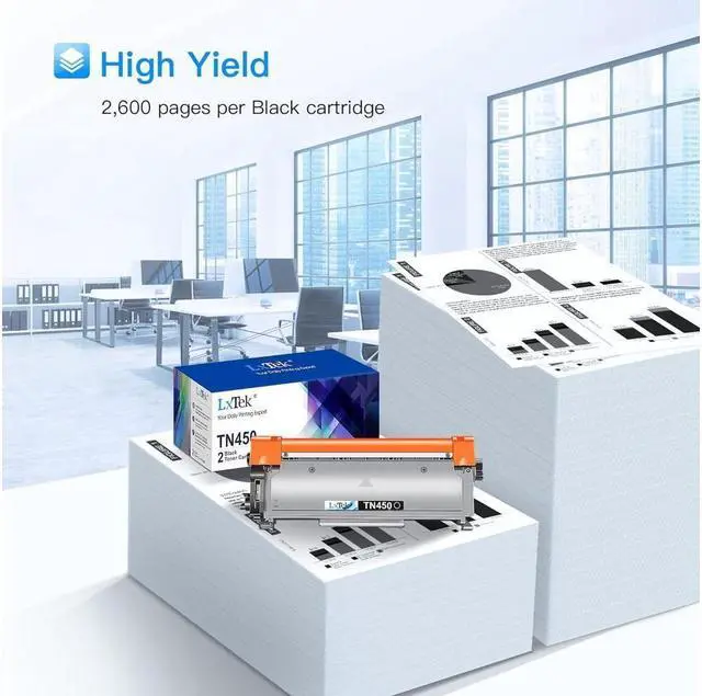 All LxTek toner cartridge replacements for TN450 TN-450 are strictly tested with industry quality control processes to perform superb results. All products are manufactured in an ISO9001 & ISO14001 certified facility
