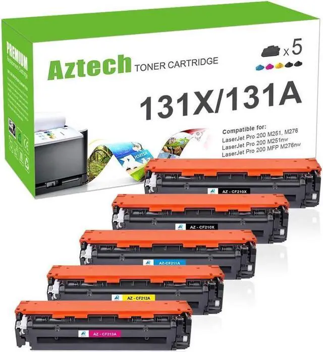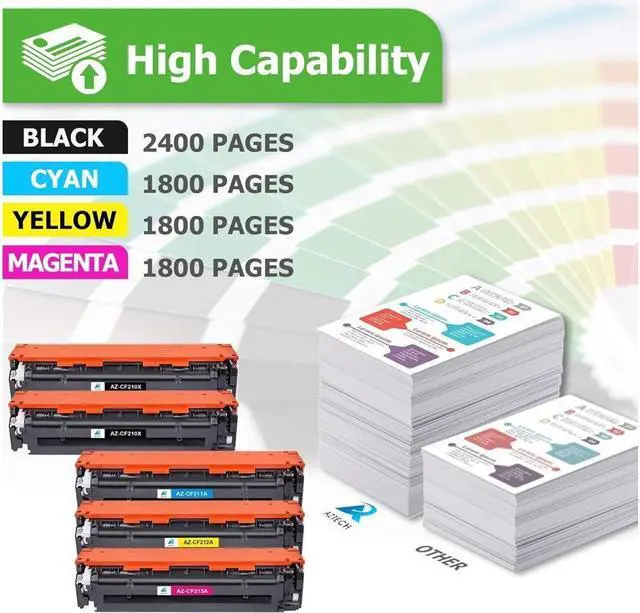 Included: 5 Packs Black Black Cyan Yellow Magenta compatible toner cartridge replacement for Laserjet 131X 131A CF210X CF210A CF211A CF212A CF213A.