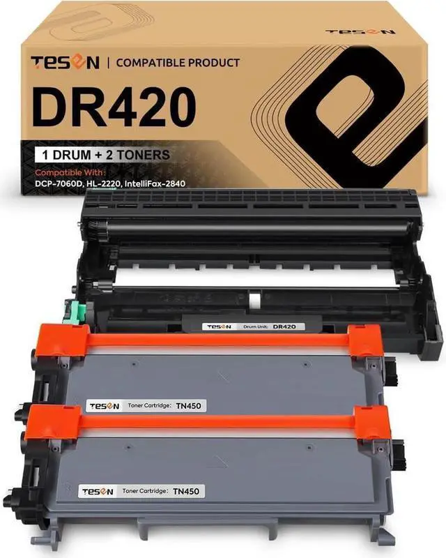 Package includes: Total 2 Packs of TESEN Compatible TN450 Black toner cartridges and 1 Pack of DR420 Drum Unit (1Drum+2Toners).