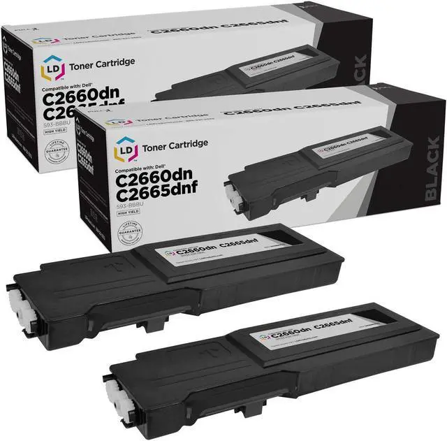 Save and print even more with our replacements for Dell 593 Toners. This offer includes 2 593-BBBU extra high yield black toner cartridge replacements for Dell 593 color laser toner printers. Why pay more for expensive brand name Dell toners? Compatible with Dell C2660dn & C2665dnf printers. Please note, retail packaging may vary, and these cartridges will only work with printers purchased within the United States and Canada. The use of replacement Dell 593 toner and supplies does not void your printers warranty. Professionally manufactured by LD Products. Dell is a registered trademark of Dell Inc.