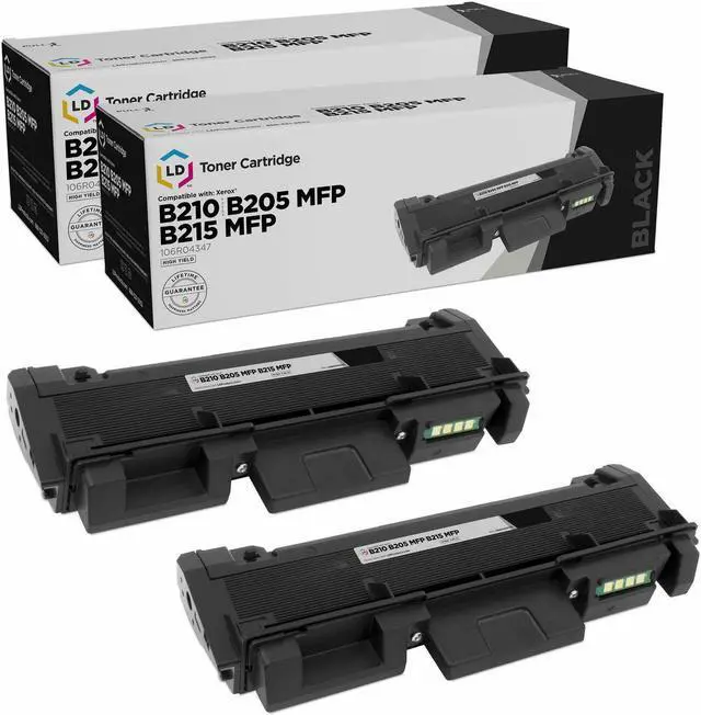 Save and print even more when you shop with LD Products! This offer includes (2) compatible Xerox 106R04347 high yield black toner cartridges; they replace the 106R04346 black standard yield toner cartridge. Why pay twice as much for expensive brand name Xerox toner when our compatible replacement printer supplies are backed by a 100% satisfaction and lifetime guarantee. Compatible with Xerox B205, Xerox B210 and Xerox B215 printers. Please note, retail packaging may vary, and these cartridges will only work with printers purchased within the United States and Canada. The use of compatible replacement cartridges and supplies does not void your printer’s warranty. Professionally manufactured by LD Products. Xerox is a registered trademark of Xerox Holdings Corporation and is not affiliated with and does not endorse LD Products.