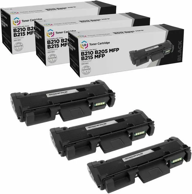 Save and print even more when you shop with LD Products! This offer includes (3) compatible Xerox 106R04347 high yield black toner cartridges; they replace the 106R04346 black standard yield toner cartridge. Why pay twice as much for expensive brand name Xerox toner when our compatible replacement printer supplies are backed by a 100% satisfaction and lifetime guarantee. Compatible with Xerox B205, Xerox B210 and Xerox B215 printers. Please note, retail packaging may vary, and these cartridges will only work with printers purchased within the United States and Canada. The use of compatible replacement cartridges and supplies does not void your printer’s warranty. Professionally manufactured by LD Products. Xerox is a registered trademark of Xerox Holdings Corporation and is not affiliated with and does not endorse LD Products.