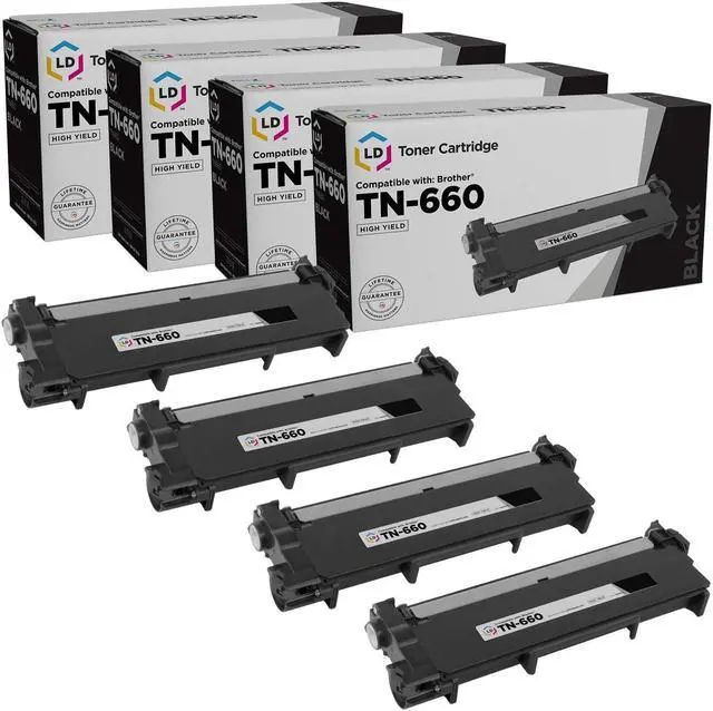 This offer includes 4 TN660 high yield black laser toner cartridges. Why pay twice as much for brand name Brother TN660 toner when our compatible printer supplies deliver excellent quality results for a fraction of the price? Compatible with the following Brother DCP, HL, and
