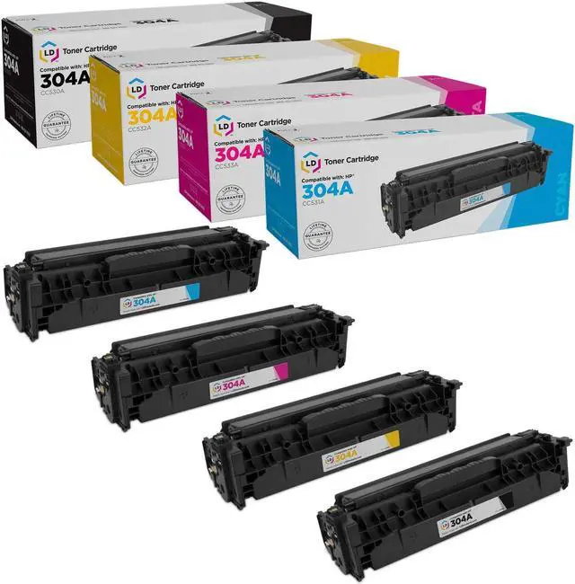 Save and print even more when you shop with LD Products! This offer includes (1) CC530A black, (1) CC531A cyan, (1) CC532A magenta and (1) CC533A yellow laser toner cartridges; these are replacements for HP 304A toner cartridge series. Why pay more for expensive brand name 304A toner? Compatible with LaserJet CM2320fxi, LaserJet CM2320n, LaserJet CM2320nf, LaserJet CP2025dn, LaserJet CP2025n, LaserJet CP2025x, Color LaserJet CM2320fxi, Color LaserJet CM2320n, Color LaserJet CM2320nf, Color LaserJet CP2025dn, Color LaserJet CP2025n and Color LaserJet CP2025x. Please note, retail packaging may vary, and these cartridges will only work with printers purchased within the United States and Canada.