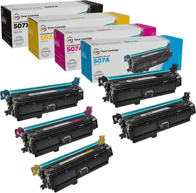 Save and print even more with our remanufactured replacements for HP 507A toner and 507X toner. This offer includes the following replacements for m570dn toner 2 CE400X black, 1 CE401A cyan, 1 CE403A magenta, and 1 CE402A yellow laser toner cartridges. Why pay more for expensive brand name laserjet 500 color m551 toner? Compatible with hp laserjet enterprise m553 toner, mfp m577 toner, hp laserjet 500 color mfp m575, laserjet 500 m551 toner, color cartridges for hp m553, hp laserjet m553 toner cartridges, color laserjet enterprise m553 toner, LaserJet Enterprise 500 Color MFP M575dn, LaserJet Enterprise 500 Color M551dn, LaserJet Enterprise 500 Color M551xh, LaserJet Enterprise 500 Color MFP M575f, LaserJet Enterprise Color flow MFP M575c, and LaserJet Pro 500 color MFP M570dn printers.