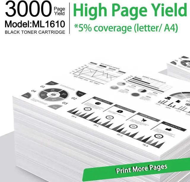 GREENCYCLE Compatible for Samsung ML-1610D3 ML-1610D2 ML-1610 toner cartridge is the replacement of the OEM model with the high-standard of quality and compatibility. Clear printout, sharp words and vivid graphics.