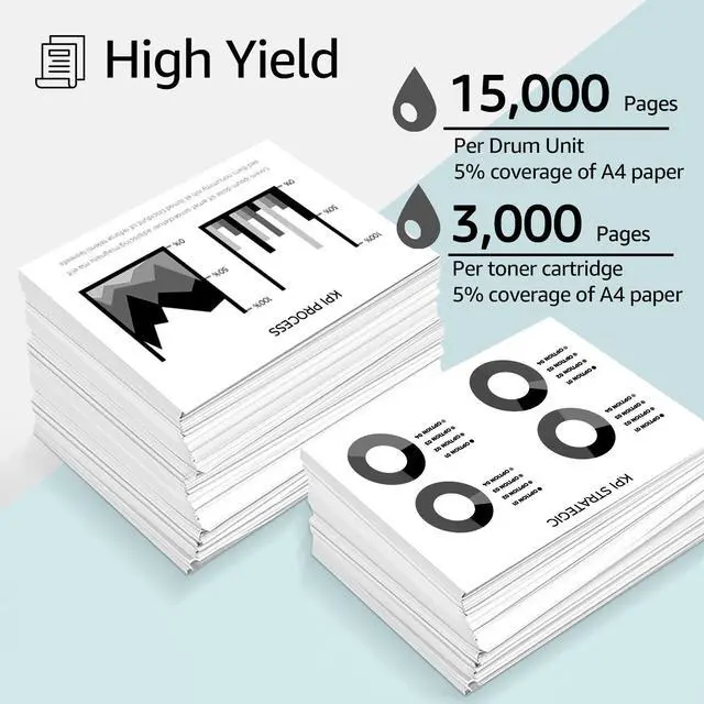 Page yield: 3,000 pages per TN830xl black toner cartridge , 15,000 Pages per DR830 drum unit based on 5% page coverage of A4 Letter.