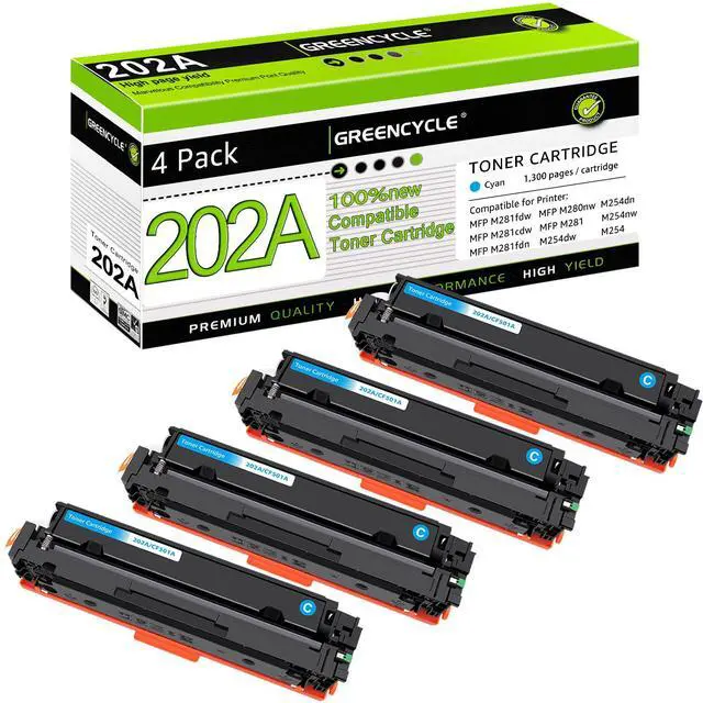 GREENCYCLE compatible 4PK 202A CF501A Cyan toner cartridge replacement delivers excellent print quality [clear text and crisp graphics] for your daily printing needs.