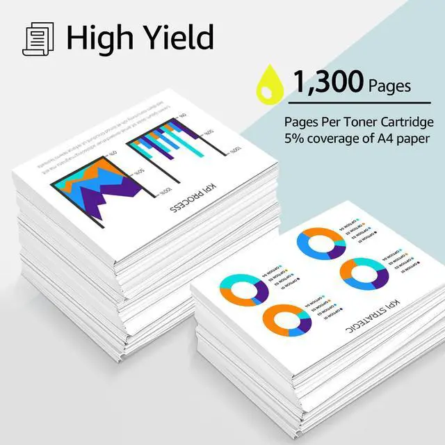 Page Yield : 1,300 pages per toner cartridge at 5% Coverage of letter/A4.