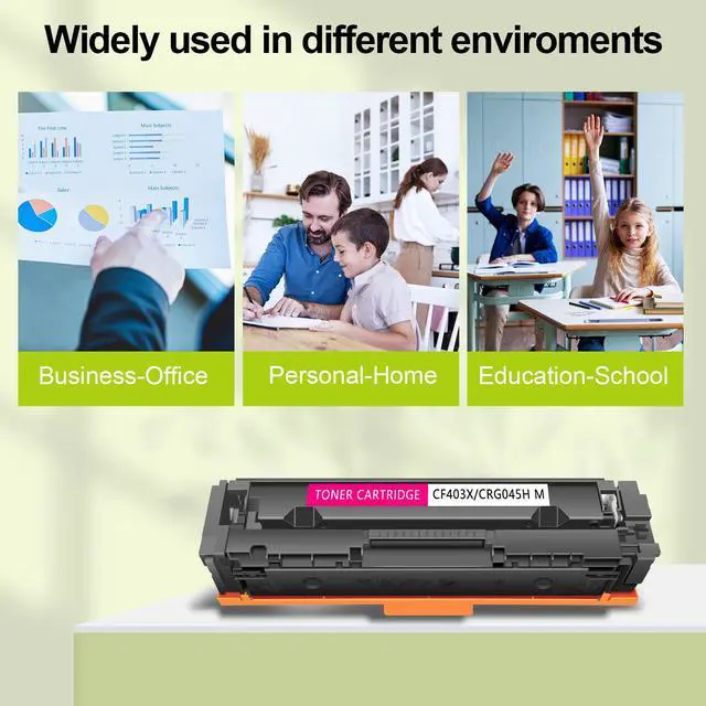 GREENCYCLE compatible 201X CF403X toner is a replacement for the OEM model with the same compatibility and superior quality. We are committed to helping more writers, graphic designers and publishers create excellent work. Clear printout, sharp words and vivid graphics.