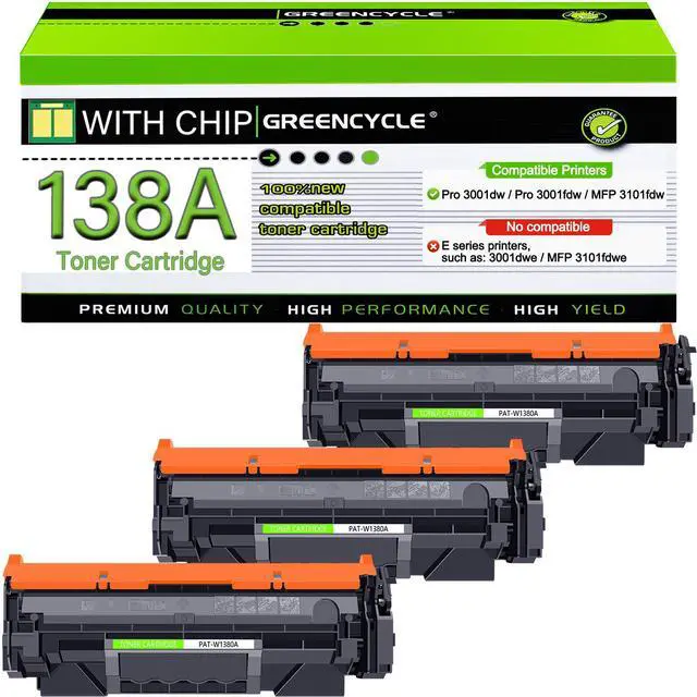 GREENCYCLE Compatible 138A W1380A [with Chip] toner cartridge is the replacement of the OEM model with the higher standards of quality and compatibility. Clear printout, sharp words and vivid graphics.
