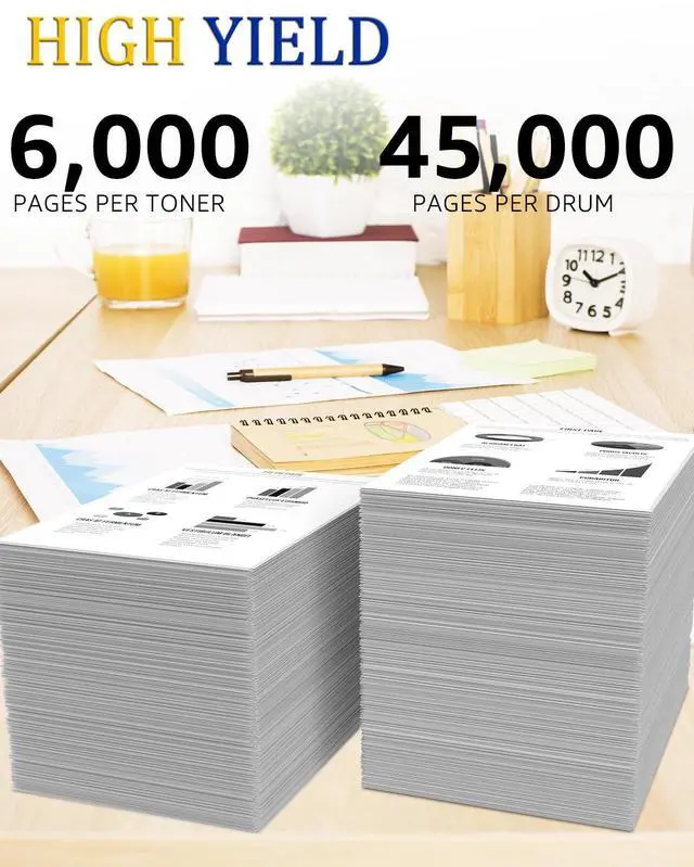 Page yield:6,000 pages per black toner cartridge/45,000 pages per drum unit based on 5% page coverage of A4 Letter.