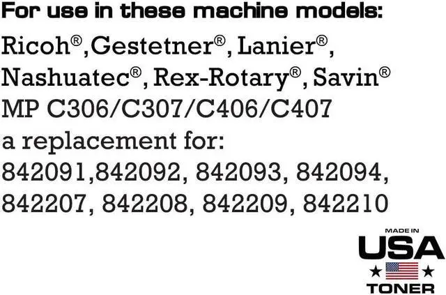 A compatible replacement for: Ricoh 842091,842092, 842093, 842094, 842207, 842208, 842209, 842210