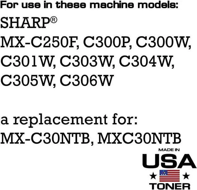 MADE IN USA TONER Compatible Replacement for Sharp MX-C30NTBA, MX-C250F, C300P, C300W, C301W, C303W, C304W, C305W, C306W (Black, 1 Cartridge)