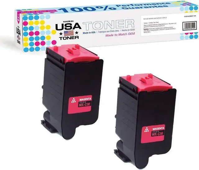 • Compatible Toner replacement for SHARP MX-C30NTM; TONER KIT contains 2 MAGENTA cartridges