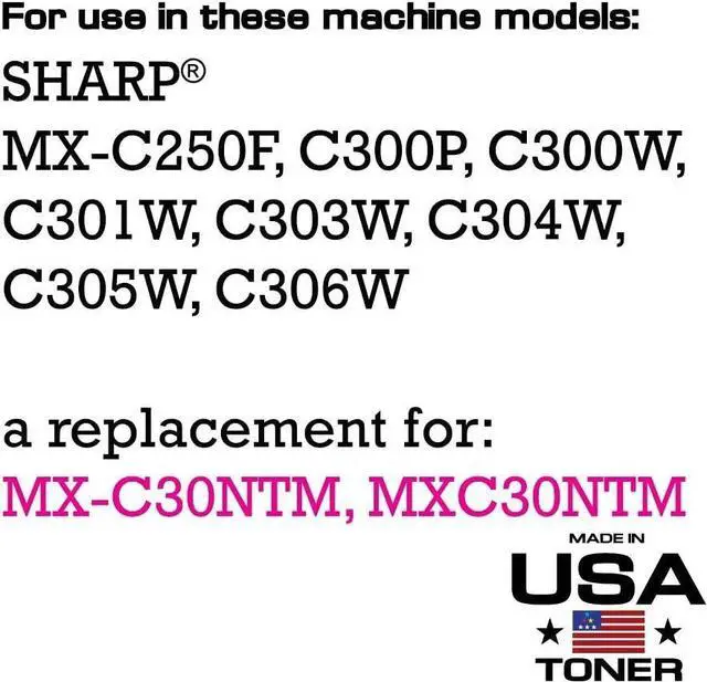 MADE IN USA TONER Compatible Replacement for Sharp MX-C30NTM, MX-C250F, C300P, C300W, C301W, C303W, C304W, C305W, C306W (Magenta, 2 Pack)