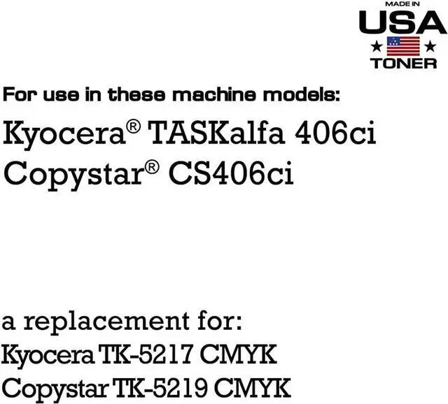 MADE IN USA TONER Compatible Replacement for use in Kyocera TASKalfa 406ci (TK-5217 CMYK) and Copystar CS 406ci (TK-5219 CMYK) (Black, Cyan, Yellow, Magenta, 4-Pack)