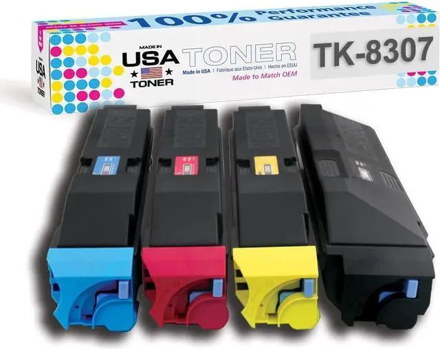 MADE IN USA TONER Compatible Replacement for Kyocera 3050ci, 3051ci, 3550ci, 3551ci TK-8307, Copystar TK-8309 (Black, Cyan, Yellow, Magenta, 4 cartridges)