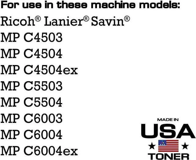 • For use in models: Ricoh Lanier Savin MP C4503, MP C4504, MP C4504ex, MP C5503, MP C5504, MP C6003, MP C6004, MP C6004ex printers