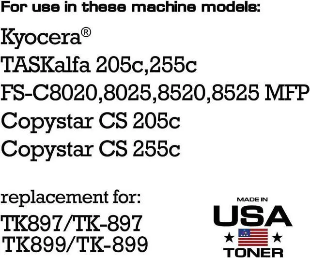Compatible Replacement for Kyocera TK-897 Ecosys FS C8520 FS C8525 TASKalfa 205c 255c, Copystar TK-899 (Cyan, Magenta, Yellow, Black)