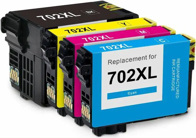 This offer consists of a 4 pack of high-yield ink cartridges, including black, cyan, magenta, and yellow, with chips that show ink levels. These cartridges are compatible with Epson 702XL T702XL and are designed for use with Epson WorkForce Pro WF-3720, WF-3720DWF, WF-3730, and WF-3733 printers. They are engineered to deliver consistent and high-quality prints. Plus, the chips accurately display the ink levels for your convenience. The use of these replacement ink cartridges does not void your printer's warranty. We provide free and fast shipping on all domestic orders.