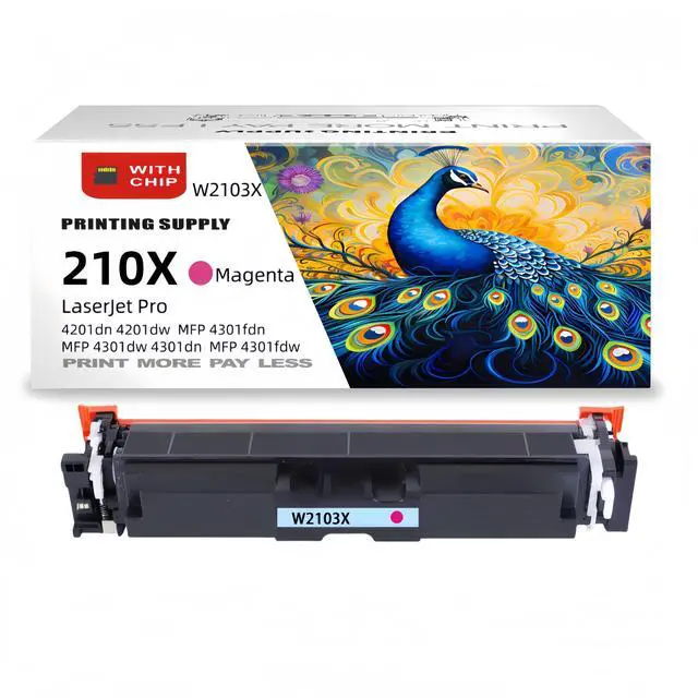 This offer includes a High Yield New Magenta Toner Cartridge With Chip. These cartridges are designed for use with HP Color LaserJet Pro 4201dn 4201dw 4301fdn 4301fdw printers. These cartridges are professionally manufactured to provide reliable performance and high-quality prints. Additionally, the use of these replacement toner cartridges does not void your printer's warranty. We also offer free and fast shipping on all domestic orders. If you are not completely satisfied with your purchase, you can return your order within 30 days for a full refund or free replacement.
