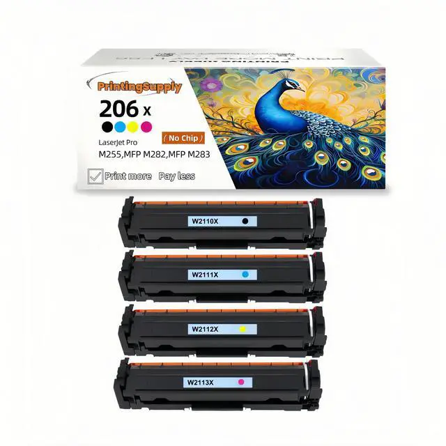 This offer includes a 4 Pack New High-Yield Black Cyan Magenta Yellow Toner Cartridge (No Chip Included). These cartridges are designed for use with HP Color LaserJet Pro M255dw M255nw MFP M282nw 283fdn 283cdw 283fd printers. These cartridges are professionally manufactured to provide reliable performance and high-quality prints. Additionally, the use of these replacement toner cartridges does not void your printer's warranty. We also offer free and fast shipping on all domestic orders. If you are not completely satisfied with your purchase, you can return your order within 30 days for a full refund or free replacement.