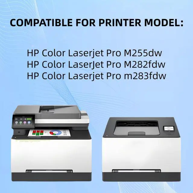 This offer includes a New High-Yield Magenta Toner Cartridge (No Chip Included). These cartridges are designed for use with HP Color LaserJet Pro M255dw M255nw MFP M282nw 283fdn 283cdw 283fd printers. These cartridges are professionally manufactured to provide reliable performance and high-quality prints. Additionally, the use of these replacement toner cartridges does not void your printer's warranty. We also offer free and fast shipping on all domestic orders. If you are not completely satisfied with your purchase, you can return your order within 30 days for a full refund or free replacement.