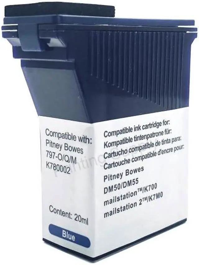 This offer includes a New Blue Ink Cartridge. These cartridges are designed for use with Pitney Bowes DM50, DM55, K780002, Mailstation K700, Mailstation3 K7M0 printers. These cartridges are professionally manufactured to provide reliable performance and high-quality prints. Additionally, the use of these replacement toner cartridges does not void your printer's warranty. We also offer free and fast shipping on all domestic orders. If you are not completely satisfied with your purchase, you can return your order within 30 days for a full refund or free replacement.