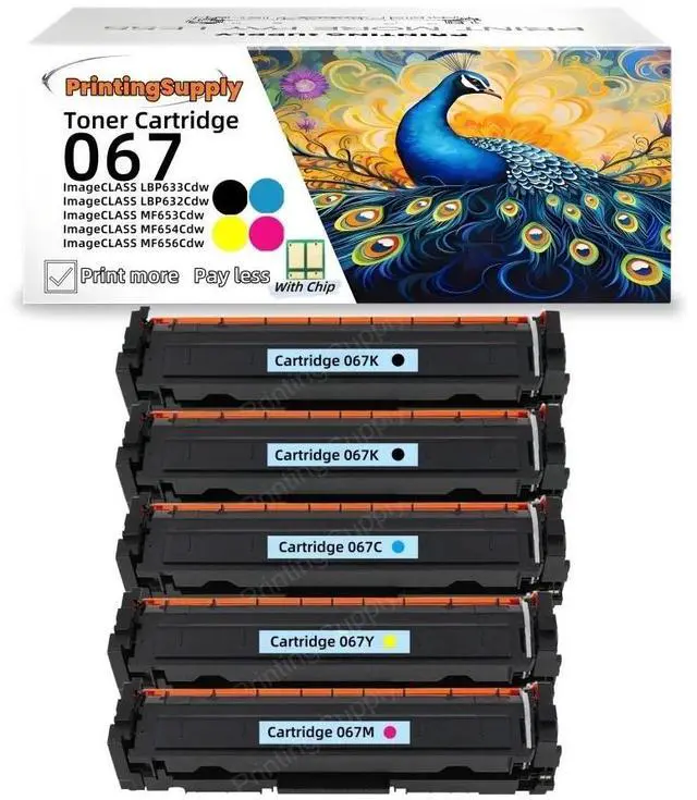 This black toner cartridge (with chip) for Canon 067 is specifically engineered for compatibility with Canon 067 Color imageclass LBP630C, MF650C series, MF656Cdw, LBP632Cdw, MF653Cdw, LBP633Cdw, MF654Cdw, MF650, LBP630 models, ensuring a perfect match with your printer and consistent, high-quality print results. made from materials compliant with ISO 9001 and ISO 14001 standards, each cartridge not only facilitates easy recycling but also offers an eco-conscious option for your printing needs. the installation is straightforward and quick, with comprehensive instructions provided to help you easily replace the supplies without any professional skills. moreover, our products are designed to deliver the same page yield as official OEM cartridges, ensuring you achieve the same lifespan and efficiency in your printing tasks. compatible with a wide range of Canon printer models, our cartridges seamlessly integrate with your specific printing equipment. we stand behind our products with a 1-year quality guarantee; should you encounter any issues during use, our dedicated customer service team is ready to provide support and resolve your concerns.