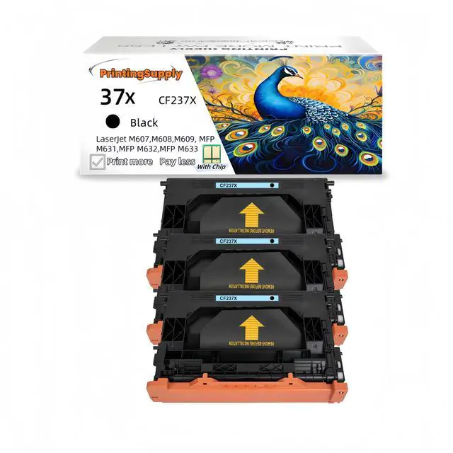 This new toner cartridge for HP 37X CF237X is specifically engineered for compatibility with HP LaserJet Enterprise M607n/M607dn/M608dn/M608n/M608x/M609dn/M609x/M608dh/M609dh, HP LaserJet Enterprise MFP M632h/M632fht/M631z/M633fh/M631dn, HP LaserJet Enterprise Flow MFP M631h/M632z/M633z. Ensuring a perfect match with your printer and consistent, high-quality print results. Made from materials compliant with ISO 9001 and ISO 14001 standards. Each cartridge not only facilitates easy recycling but also offers an eco-conscious option for your printing needs. The installation is straightforward and quick, with comprehensive instructions provided to help you easily replace the supplies without any professional skills.Moreover, our products are designed to deliver the same page yield as official OEM cartridges, ensuring you achieve the same lifespan and efficiency in your printing tasks. Our cartridges seamlessly integrate with your specific printing equipment. We stand behind our products with a 1-year quality guarantee; Should you encounter any issues during use, our dedicated customer service team is ready to provide support and resolve your concerns
