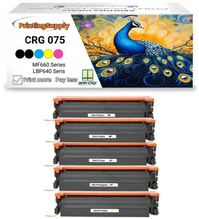 • Package includes: 5 Pack BKCMY 075 Toner Cartridge